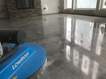 This process, used exclusively by concrete innovations, produces a finished floor requiring no wax or sealer to maintain its glow. The finish is obtained by using specialized concrete grinding equipment that grinds slowly, hones, and then polishes every inch of the concrete floor to the desired sheen.